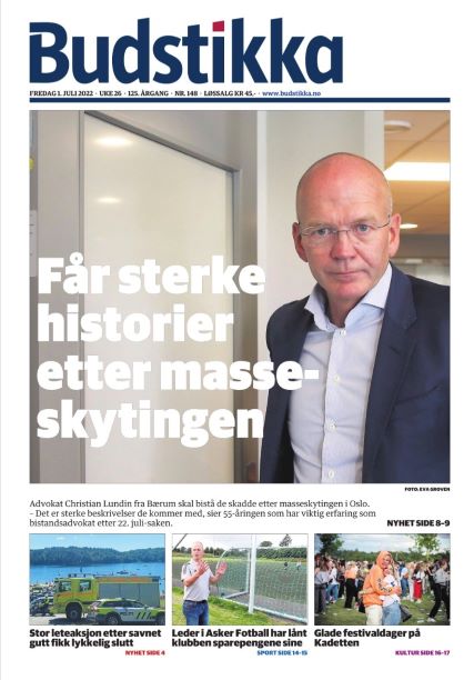 Advokat Christian Lundin er oppnevnt som bistandsadvokat for flere av ofrene etter terrorskytingen i Oslo sentrum 25. juni 2022. I Asker og Bærum Budstikka 1. juli 2022 forklarer avisen mer om advokat Lundins rolle og hvilke oppgaver han ivaretar som bistandsadvokat.