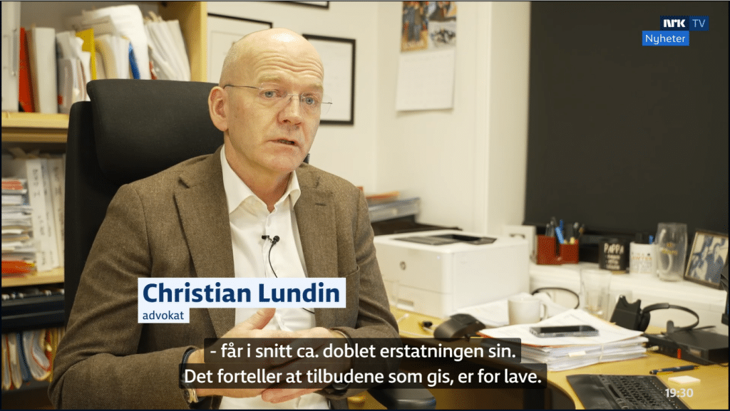 «Vår erfaring tilsier at forsikringsselskaper ofte legger seg alt for lavt. Vår uformelle statistikk viser nær en dobling når vi sammenlikner tilbud før stevning og resultat etter endt rettsprosess.»